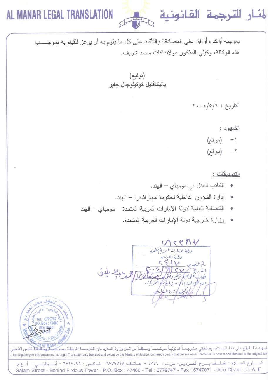 Return to Man with power of attorney, UAE